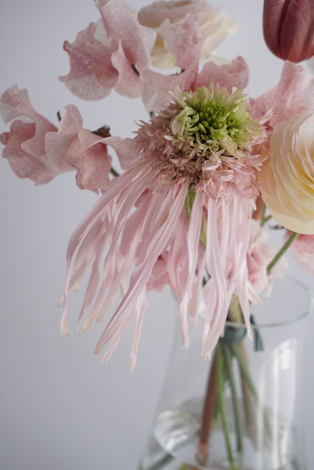 他にも、すこしくすみの入ったニュアンスピンクのお花を合わせました。