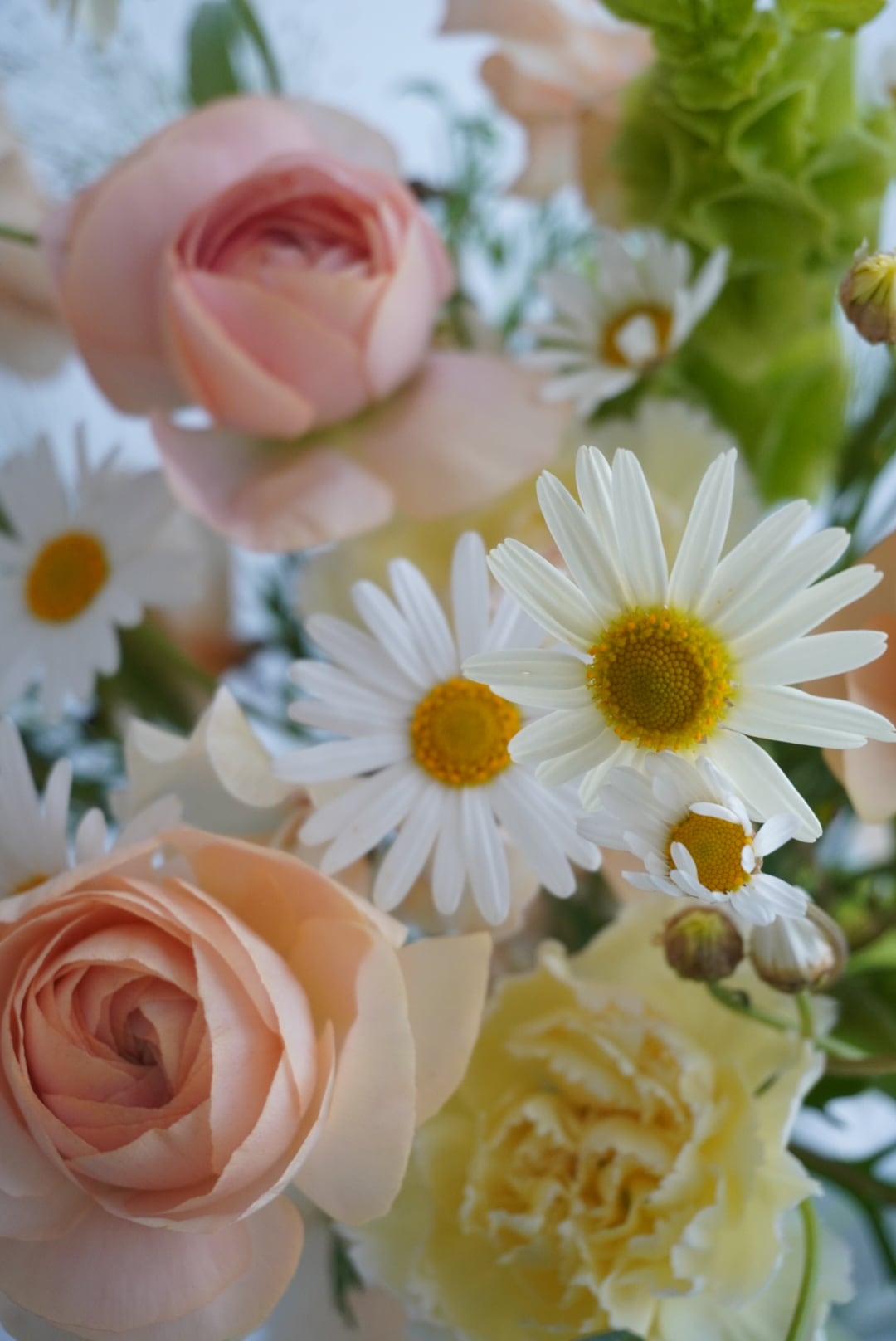 淡いオレンジのラナンキュラスがとってもかわいくて主役に花束をお作りしました。